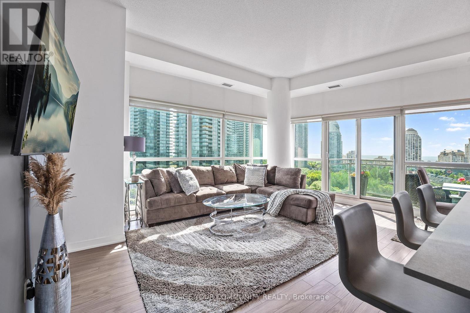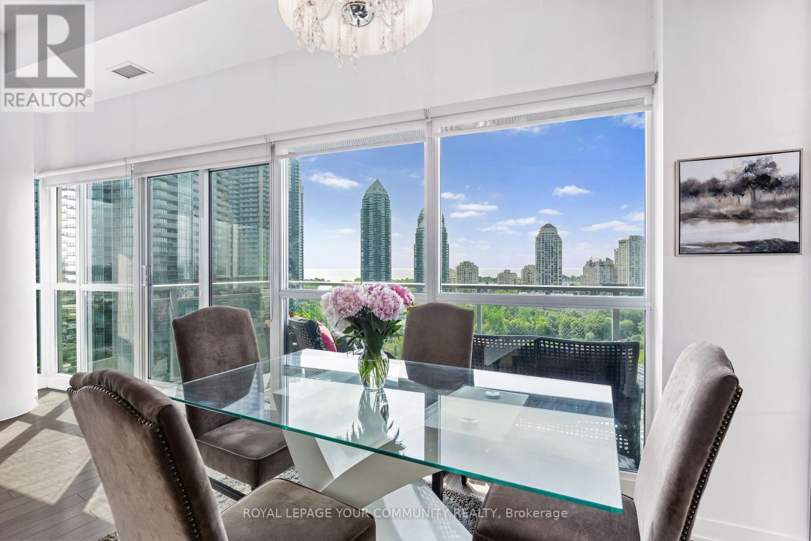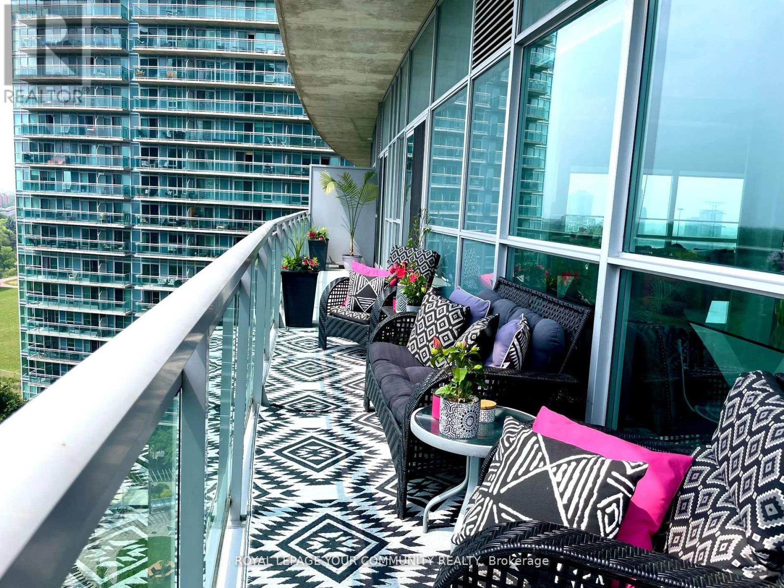 $1,046.72 MonthlyEnjoy Resort-Style living in the City; elegant and impressive 2 bedroom, 2 bathroom corner suite featuring lofty 10 ft ceilings and 975 square feet of beautifully designed space . This Condo offers an expansive open-concept kitchen, living and dining area which includes a large mirrored credenza - perfect for entertaining; walk-out to oversized (199 square ft) balcony and take in the fabulous south-east panoramic cityscape and Lake Ontario view - luxury living on Toronto's vibrant waterfront! The primary bedroom, which can accommodate a king size bed, has a terrific walk-in closet as well as a large lovely custom mirrored closet! Both bedrooms have walkouts to the balcony, each showcasing stunning unobstructed lake views; 2 Large Lockers included with this unit; Residents enjoy access to World-Class Amenities including a rare find outdoor pool, indoor pool, BBQ areas, 2 gyms with one located on the roof-top; yoga/fitness studio offering free classes; 3 hot tubs, 2 saunas, Badminton/Volley Ball Court; theatre room; billiards, library, 2 lounge/party rooms with amazing lake & city views - all this just steps from shops, lakefront, parks and dining. For boaters, conveniently located near Etobicoke Yacht Club and Marinas, and just a short walk from Mimico GO Station - an easy and efficient commute to work. The new adjacent Grand Avenue Park includes a free running/walking track, soccer field, splash pad, large dog park, rental bikes, and a new playground; very close to Gardiner Expressway, QEW, Lakeshore Blvd., Sherway Gardens Shopping Centre and downtown Toronto! Unit includes 2 large, side by side lockers, a parking spot near the elevator and 2 large mirrored custom built-in storage units; 24 Hour Concierge & Security - Pet Friendly Building! (id:60063)