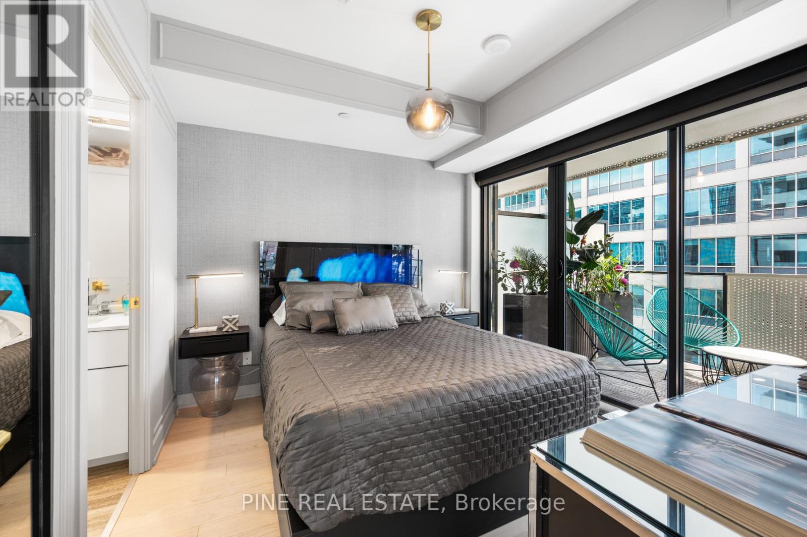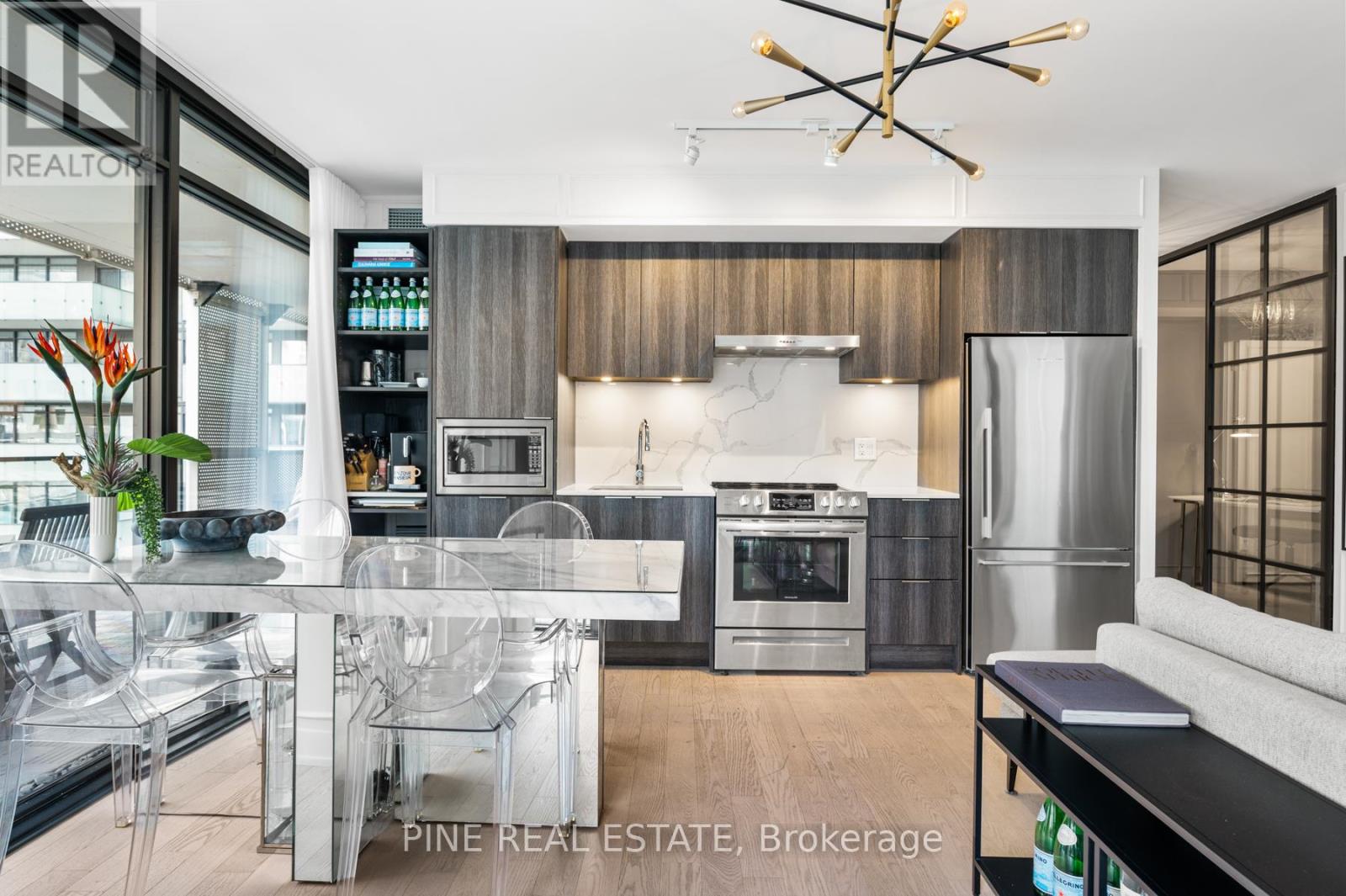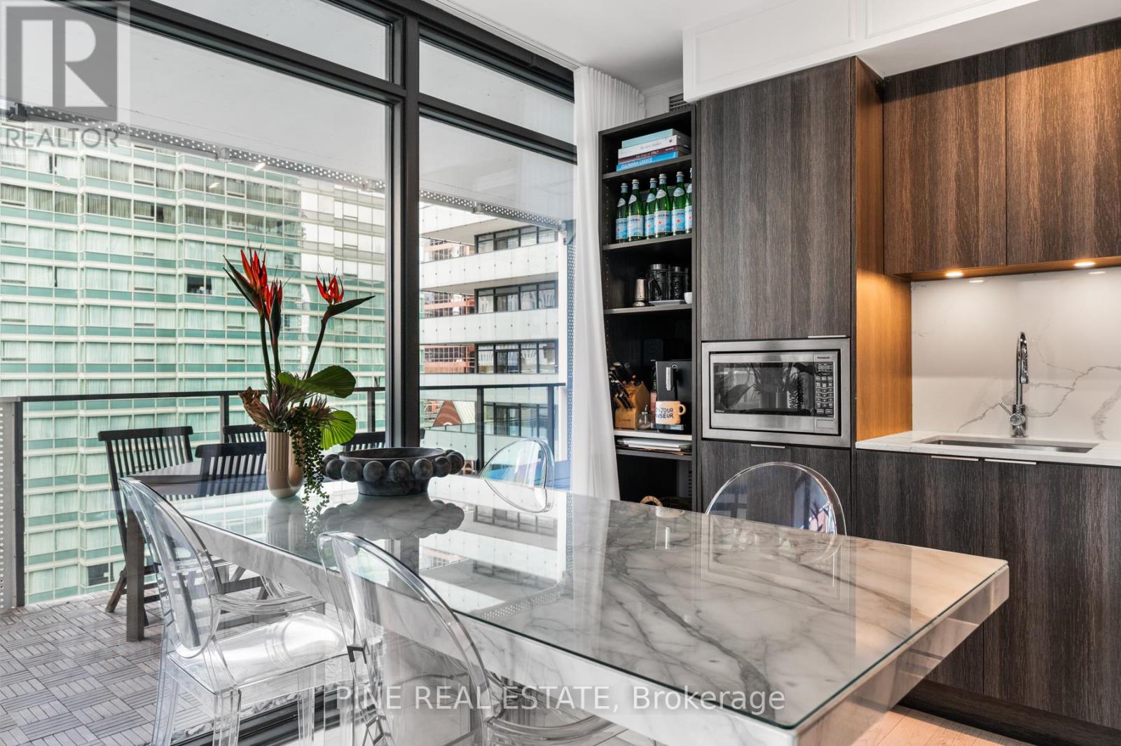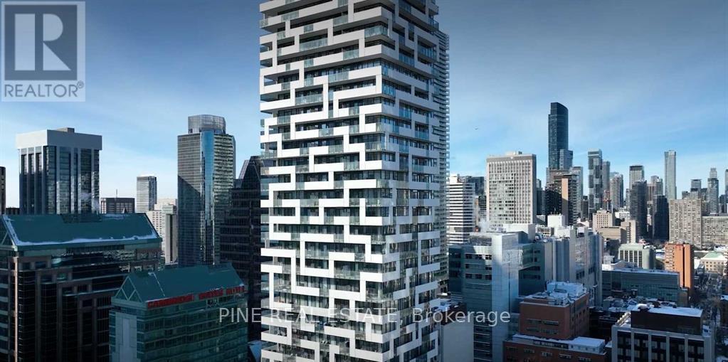 $918 MonthlyCan't Be Young and Rich? Then, live there. Welcome to YONGE+RICH Condos by Great Gulf. Suite 1305 offers 1400sqft of meticulously curated space that creates a truly one-of-a-kind urban oasis in the heart of downtown Toronto. Perched on the SW corner of the 13th floor is this inviting 894 SQFT 2 Bed, 2 Bath + Den Corner Suite. The "Dalhousie" layout is the flagship floor plan, which boasts the LARGEST interior AND exterior spaces, illuminated by natural light with 8'6" Floor-To-Ceiling windows. Professionally designed and decorated, this suite is truly 'RICH' with emotion and thought but still YONGE at heart. Every detail has been thoughtfully elevated. Large stone countertops throughout the suite clad the touch surfaces. Wainscotting wall panelling wraps every room. Clean matte black-trimmed mirrored sliding closet doors and gold hardware throughout add bold and sophisticated. Custom-built-in shelving has been added to every room, offering both form and function. The den is enclosed with a striking black, custom loft-style steel partition and features a mirrored wall perfect for a stylish home office, third bedroom, or dining area. The kitchen is sleek and functional with stainless steel appliances. Both bathrooms are spa-like retreats. All bathrooms feature a waterfall-edge vanity and glass partition. The 3-piece guest bath is wrapped in Brazilian nature-inspired art photography printed on wallpaper, creating a grounded sense of being in nature. Each space in the home has been crafted to evoke a unique emotion and personality, luxurious, calming, vibrant, or bold. Step out onto your calming, zen-inspired 506 sqft southwest-facing wraparound balcony, with southwest exposure, which is truly an extension of your living space. With distinct areas for lounging, dining, & entertaining while soaking in city views. Includes 1 parking space + 2 lockers. This is downtown living reimagined with soul, intention, and a level of detail rarely seen. See it before it's gone. (id:60063)
