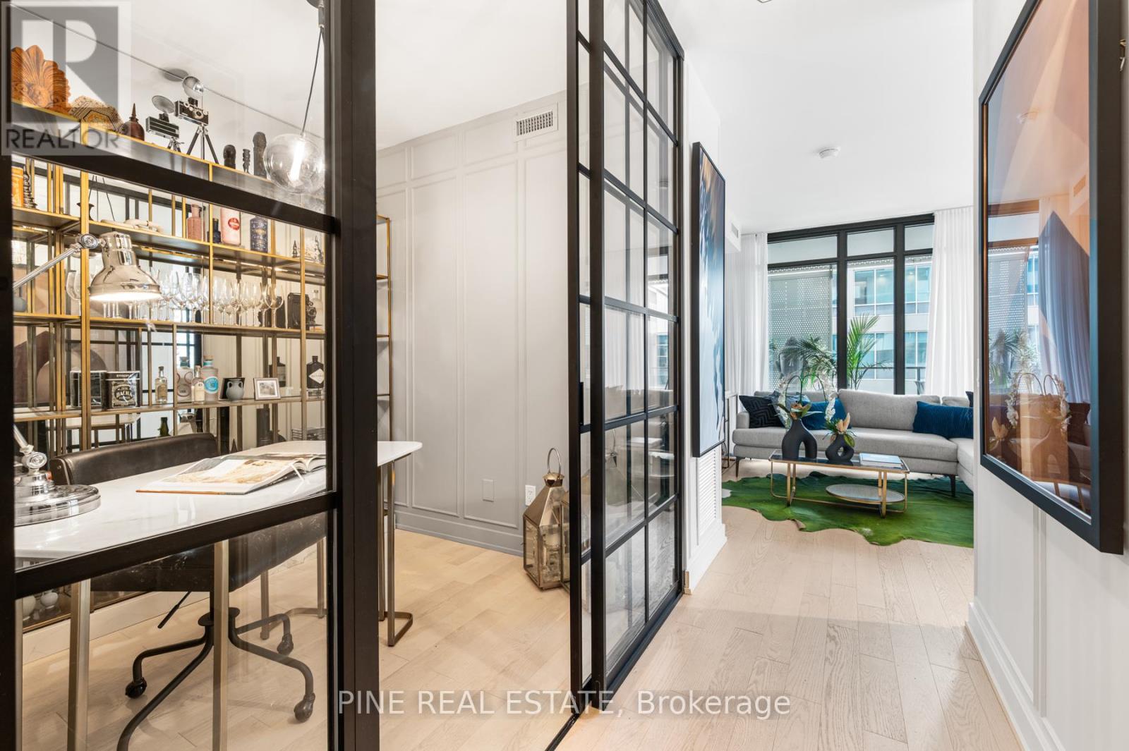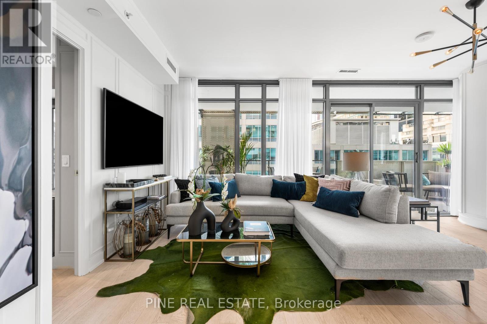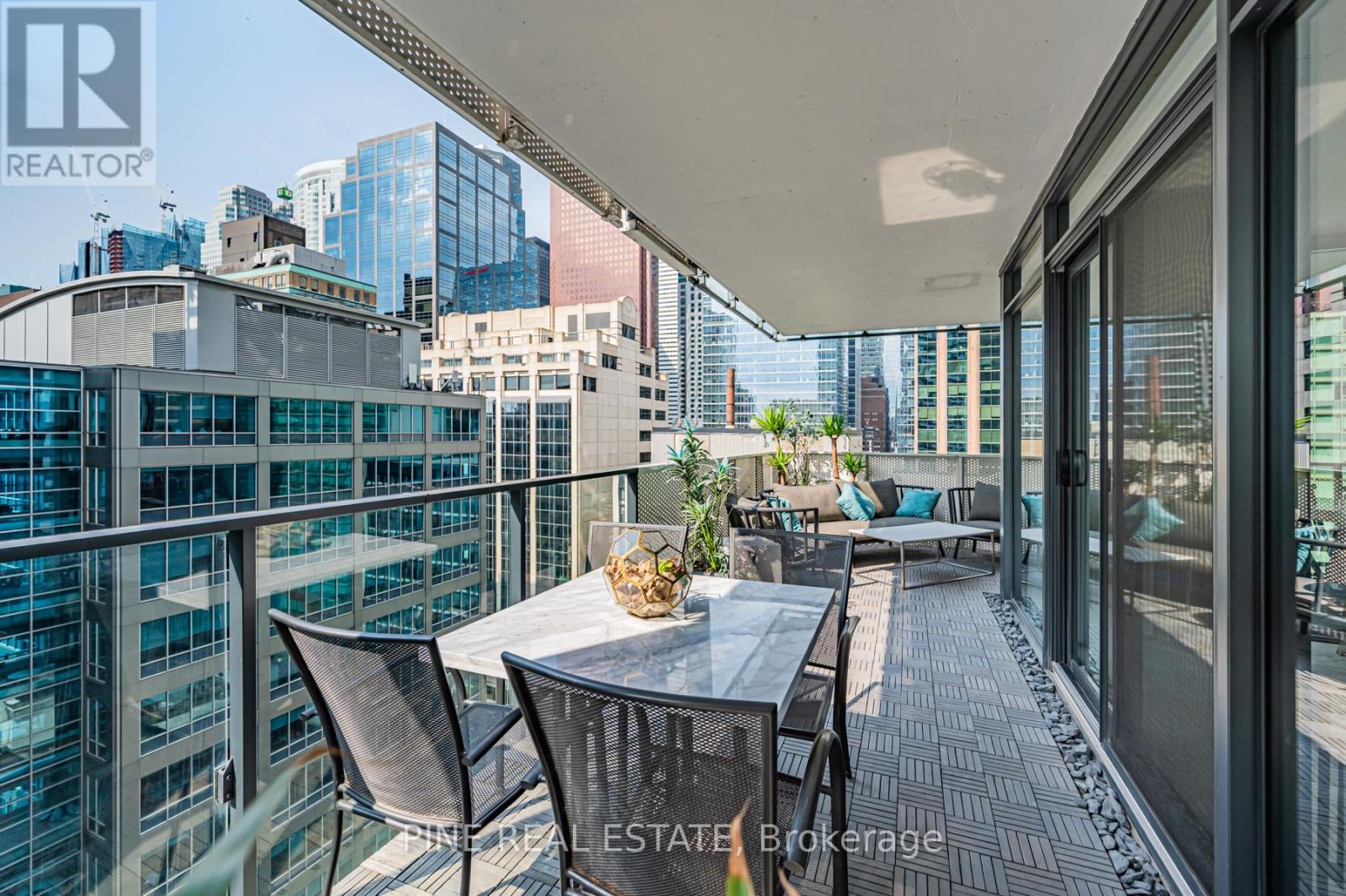 $918 MonthlyCan't Be Young and Rich? Then, live there. Welcome to YONGE+RICH Condos by Great Gulf. Suite 1305 offers 1400sqft of meticulously curated space that creates a truly one-of-a-kind urban oasis in the heart of downtown Toronto. Perched on the SW corner of the 13th floor is this inviting 894 SQFT 2 Bed, 2 Bath + Den Corner Suite. The "Dalhousie" layout is the flagship floor plan, which boasts the LARGEST interior AND exterior spaces, illuminated by natural light with 8'6" Floor-To-Ceiling windows. Professionally designed and decorated, this suite is truly 'RICH' with emotion and thought but still YONGE at heart. Every detail has been thoughtfully elevated. Large stone countertops throughout the suite clad the touch surfaces. Wainscotting wall panelling wraps every room. Clean matte black-trimmed mirrored sliding closet doors and gold hardware throughout add bold and sophisticated. Custom-built-in shelving has been added to every room, offering both form and function. The den is enclosed with a striking black, custom loft-style steel partition and features a mirrored wall perfect for a stylish home office, third bedroom, or dining area. The kitchen is sleek and functional with stainless steel appliances. Both bathrooms are spa-like retreats. All bathrooms feature a waterfall-edge vanity and glass partition. The 3-piece guest bath is wrapped in Brazilian nature-inspired art photography printed on wallpaper, creating a grounded sense of being in nature. Each space in the home has been crafted to evoke a unique emotion and personality, luxurious, calming, vibrant, or bold. Step out onto your calming, zen-inspired 506 sqft southwest-facing wraparound balcony, with southwest exposure, which is truly an extension of your living space. With distinct areas for lounging, dining, & entertaining while soaking in city views. Includes 1 parking space + 2 lockers. This is downtown living reimagined with soul, intention, and a level of detail rarely seen. See it before it's gone. (id:60063)