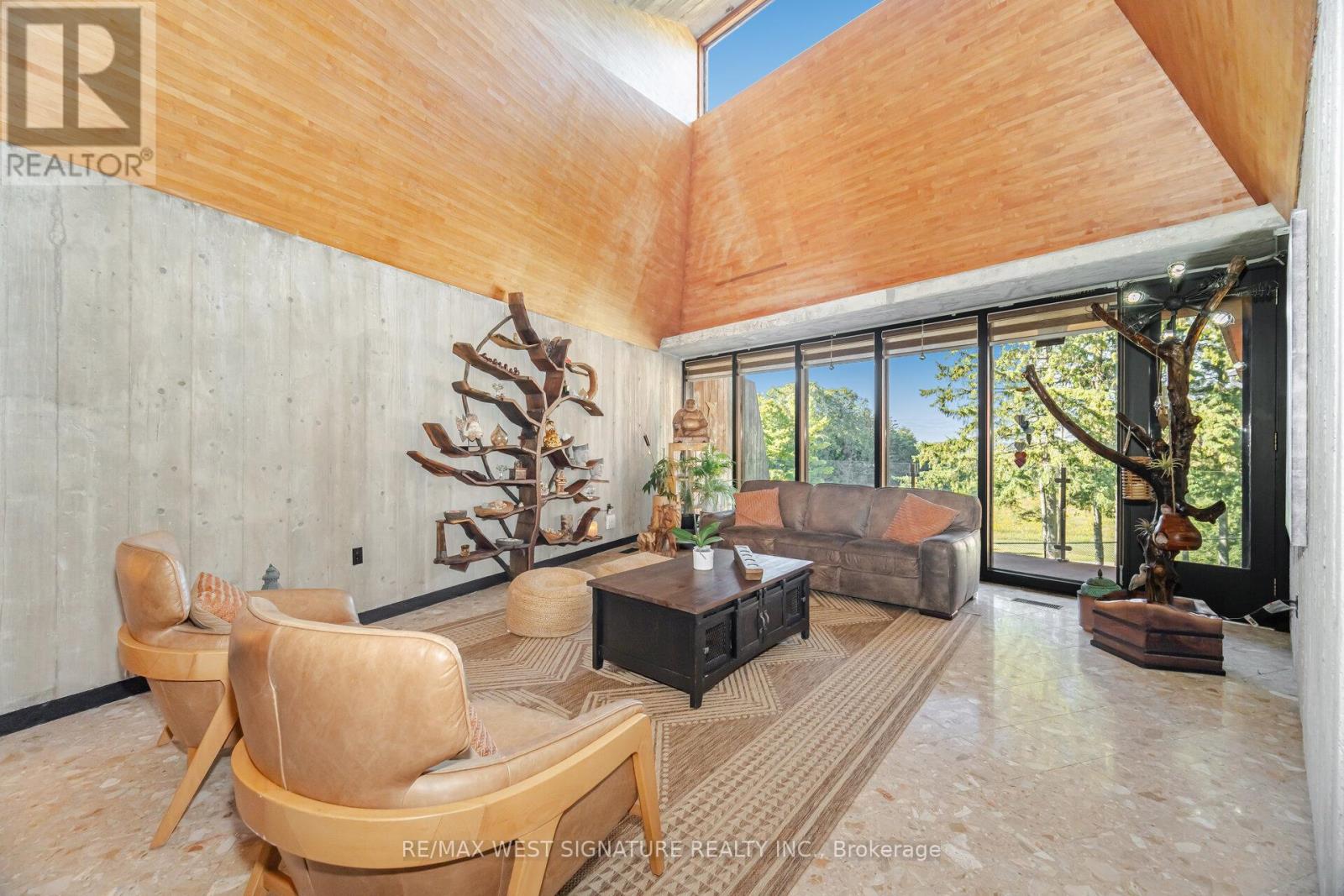 A long winding tree lined drive leads to the architecturally significant " SUN DIAL HOUSE" This one of a kind modernistic home built with concrete + glass is inspired by design icons Frank Lloyd Wright and Le Corbusier. Sitting on a private 17 Acre property with 2 ponds, forest and open land ideal for Equestrian or vineyard! Home is completely renovated from top to btm and has approx 10,000 sf of sheer opulence for the discerning buyer looking for a statement home in the milddle of the bridle path of King. Multiple walkouts to private terraces, soaring ceilings, radiant in-floor heating and picture views abound. Perfect retreat for a large multiple generational family. A special estate property with interesting provenance and superb location close to the finest private schools, equestrian farms, GO train + more! (id:60063)