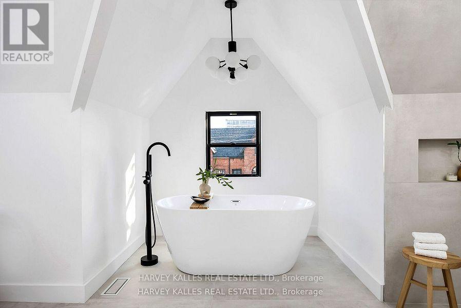 Its not often a home of this caliber becomes available in the vibrant heart of Dundas & Ossington. This fully detached, three-storey residence is a masterclass in modern luxury! Tucked away on a quiet, tree-lined street, yet just steps from Toronto's most exciting restaurants, boutiques, and cultural hotspots. Thoughtfully reimagined from top to bottom, the home offers 3,195SF, including 2,335SF above grade & 860SF fully finished lower level. Every element is curated to the highest standard, from 10-foot ceilings and floor-to-ceiling windows to Italian marble accents including extremely elegant living room fireplace, custom millwork, Sonos-integrated in-ceiling speakers, and indirect mood lighting throughout. The custom kitchen features integrated Fisher & Paykel appliances and over 17 feet of built-in storage, leading to a powder room, mudroom, and walk-out to a fully fenced garden. Upstairs, three bedrooms include an incredible third-floor primary retreat with custom paneling, a private terrace with pergola, custom walk-in closet, and spa-like 5-piece ensuite bath. The finished lower level adds flexibility with a family room, fourth bedroom with 3-piece ensuite, in-ceiling speakers, tons of additional storage, and a laundry rough-in. Complete with a welcoming front porch, landscaped front yard, and parking for two, this exceptional home offers luxurious urban living in one of Toronto's most sought-after neighborhoods. (id:60063)
