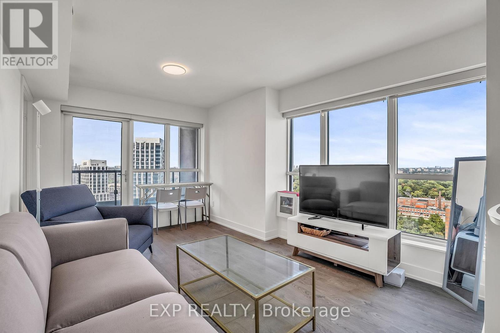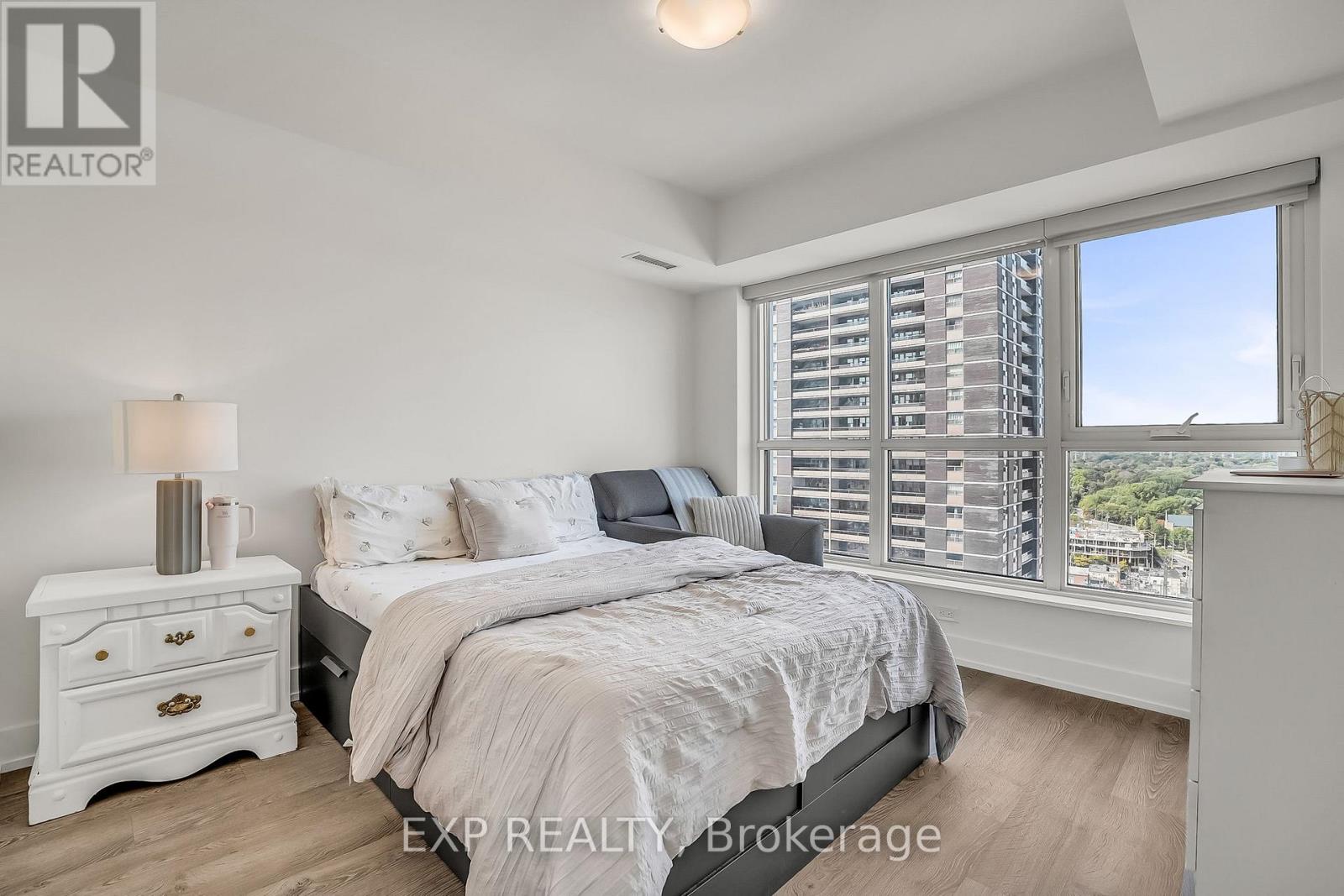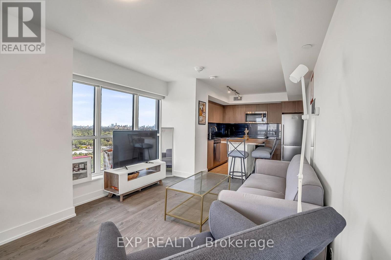 Built in 2022 and freshly painted for your convenience, this 2-bedroom + den, 2-bathroom corner suite at Bloor Promenade offers turnkey condo living in one of Etobicoke's most connected neighbourhoods. Perched on the 22nd floor, this northeast-facing suite boasts panoramic city views from two private balconies and delivers 888 sq ft of thoughtfully designed living space. The open-concept layout features wide-plank laminate flooring, quartz countertops, a matching slab backsplash, and Energy Star stainless steel appliances. The oversized den offers the flexibility to function as a third bedroom, guest space, or dedicated home office. The spacious primary suite includes a walk-in closet and a spa-inspired ensuite with a deep soaker tub, while the second bathroom provides a sleek walk-in shower. With one parking space, one locker, and just a four-minute walk to Islington Subway Station, this home is ideal for both lifestyle and convenience. Bloor Promenade by Tridel offers exceptional amenities including a fully equipped fitness centre with yoga and spin studios, an indoor pool and hot tub, sauna and steam rooms, indoor basketball court, theatre, kids playroom, outdoor terraces with BBQs, and guest suites. Whether you're a first-time buyer, downsizer, investor, or simply seeking a vibrant walkable community with luxury finishes, this suite is move-in ready and not to be missed. Schedule your private showing today. (id:60063)