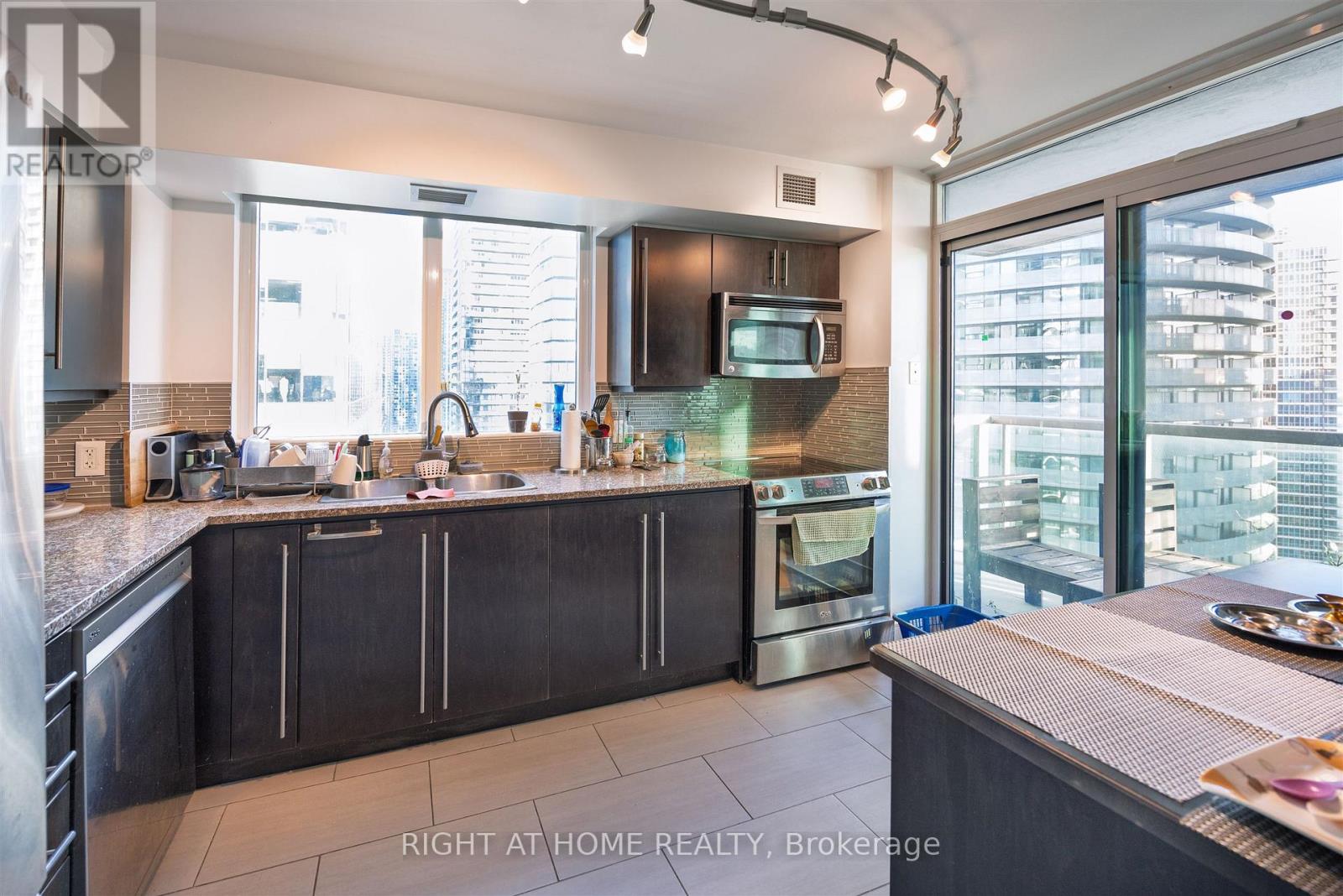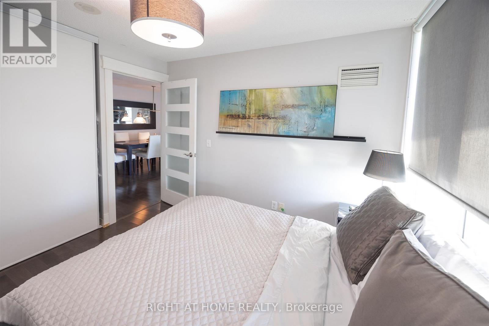 $1,224.08 MonthlyRarely available high-floor corner suite offering nearly 1,000 sq. ft. of bright, open-concept living in the heart of downtown Toronto! This tastefully updated residence features two spacious bedrooms in a split layout. The primary bedroom is inclusive of a walk-in closet and private en-suite. A second full washroom provides added convenience. The modern kitchen showcases stainless steel appliances enhanced by a custom grey veneer wraparound feature wall providing division between the living and kitchen space. Enjoy stunning sunset views from your private outdoor balcony. Residents have access to the exclusive Infinity Club, offering resort-style amenities: indoor pool, hot tub, sauna, fitness centre, media/theatre room, billiards, library, party and conference rooms, guest suites, and 24-hour concierge. Heat, hydro, and water are included in the utilities. Unbeatable location just steps to the waterfront, PATH, Union Station, Scotiabank Arena, Rogers Centre, and Harbourfront. Includes one parking and locker. (id:60063)