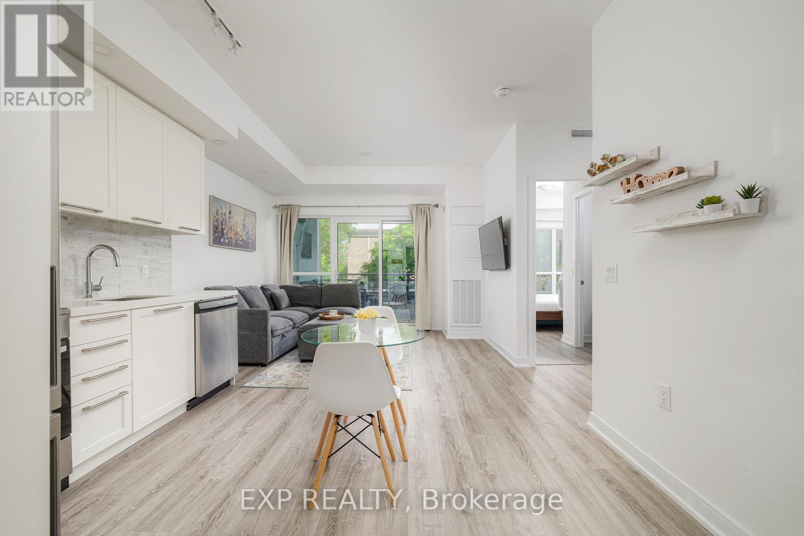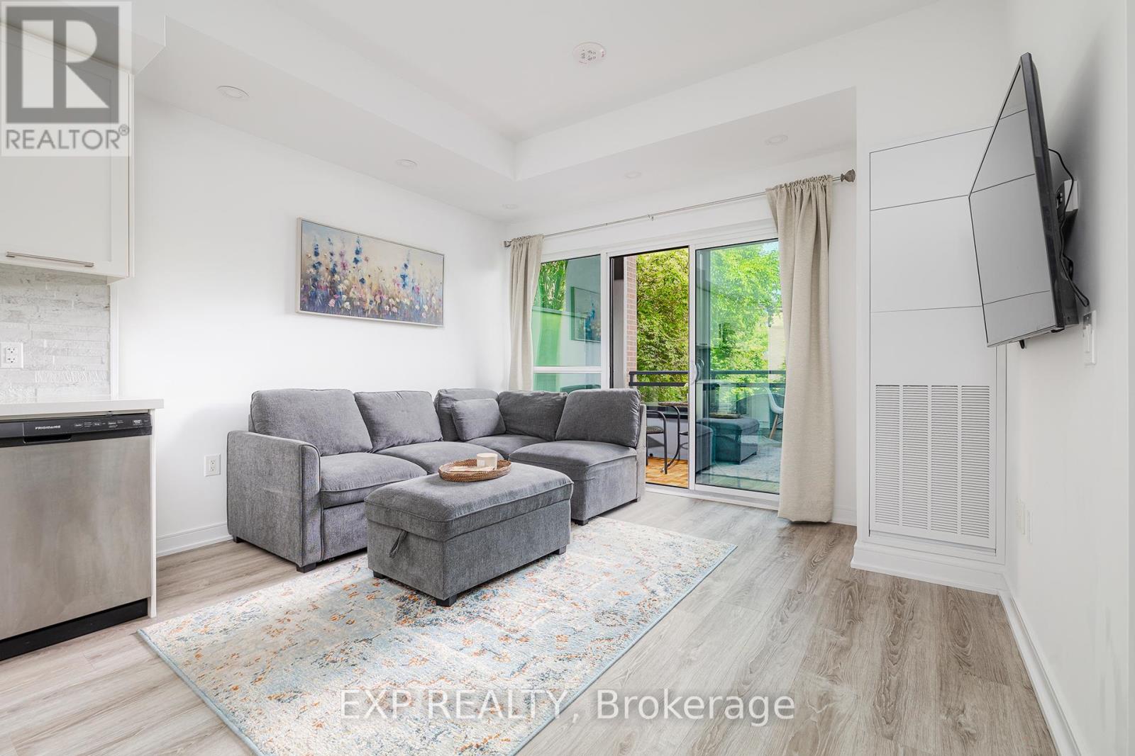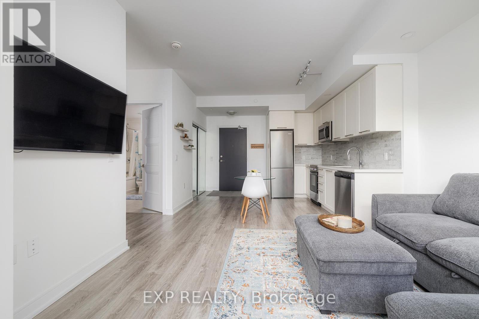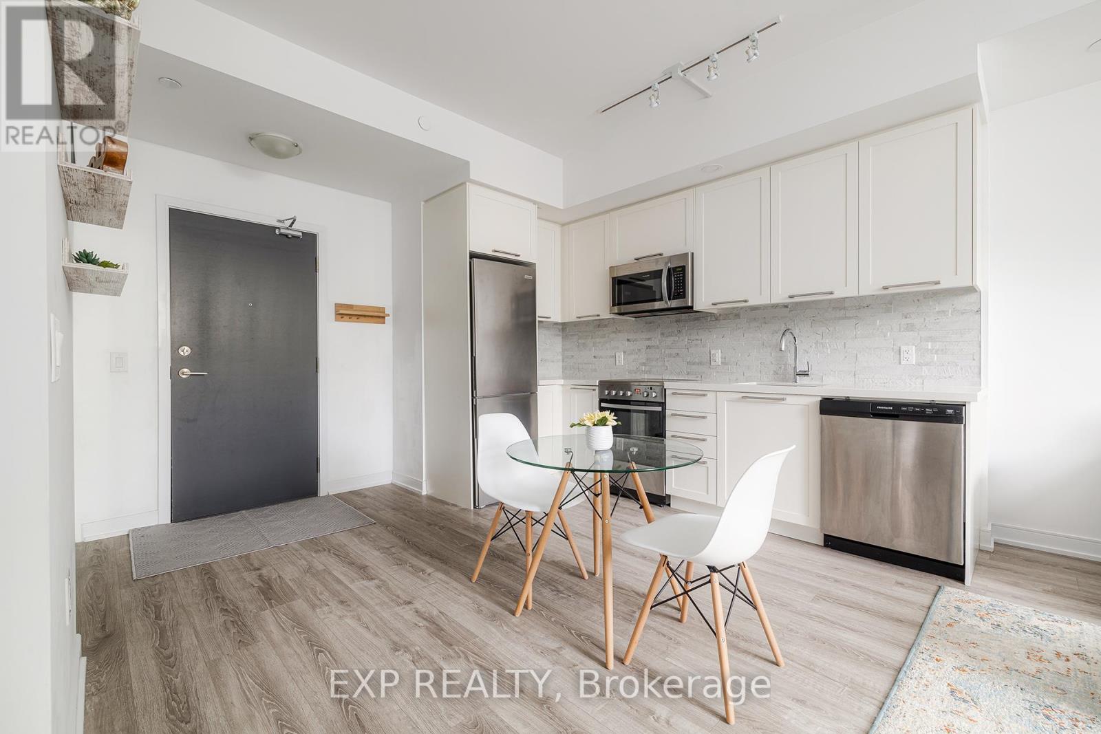 Urban Tranquility by the Lake A Boutique Condo That Feels Like Home. Tucked just moments from the waterfront, this rarely offered suite in a boutique 10-storey building offers the perfect mix of calm, convenience, and connected community living. Located in one of Toronto's most scenic pockets steps to Humber Bay, lush parks, bike trails, playgrounds, and local cafés this home brings together the best of nature and city life. Unlike the towering skyscrapers nearby, this intimate, low-rise building offers a sense of privacy and ease. That's what drew us here in the first place, the sellers share. We wanted a peaceful place close to everything, but without the noise, congestion, or long elevator waits. And this building offered all of that plus a much larger floor plan and parking and locker included. The suite itself features 9-foot ceilings, a bright open-concept layout, a fully upgraded kitchen with full-height backsplash and thick stone counters, pot lights, and Whirlpool laundry machines. The bathroom includes an upgraded vanity and tile work, with custom built-ins and a thoughtfully designed closet system in the bedroom. Facing north, the large balcony feels like a hidden retreat framed by mature trees that offer both dappled sunlight and privacy, with a charming brick wall feature. Across the street, the Gatestone Community Centre offers everything from fitness and health services to a seasonal farmers market. A short walk or bike ride takes you to the Humber Bridge, from where scenic paths lead you to downtown, Budweiser Stage, Cherry Beachor westward toward Mississauga and beyond. Commuters will love the proximity to Old Mill Station and the 11-minute drive to the CN Tower on a clear day. Inside the building, security is top-tier with fob-only floor access, and amenities include a gym, pet room, and a soon-to-open BBQ patio area. The community is vibrant yet respectful, with a mix of owners and tenants aged 2540. (id:60063)