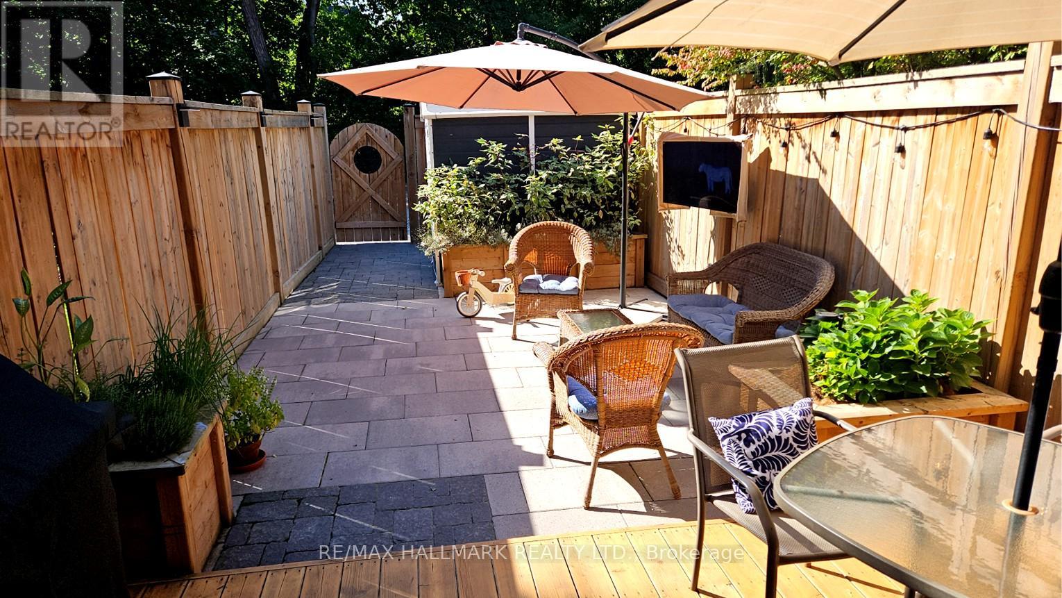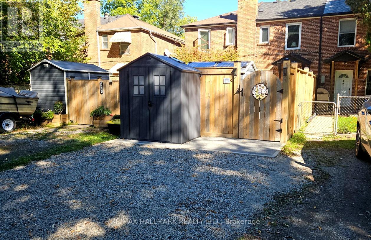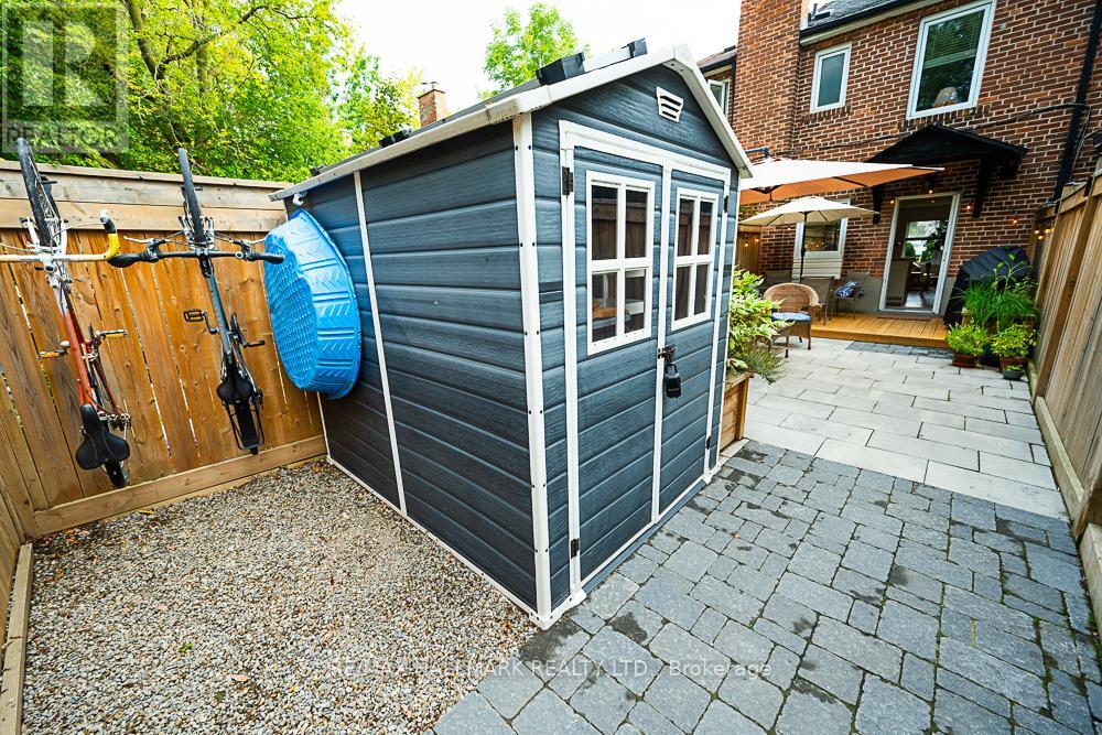 CUTE, QUIET, BRIGHT and CHARMING - This 2 bedroom, freehold, family starter with TWO PRIVATE PARKING SPOTS, perfectly situated in a highly sought-after location. THIS HOME IS IN EXCELLENT CONDITION, meticulously maintained, cared-for and UPGRADED. Steps to top-rated schools, synagogues, shops, restaurants, public transit & parks. PRIVATE BACKYARD: solar-powered, new privacy fence, a spacious deck for summer gatherings (NOTE: garden furniture included, as well as TWO garden sheds. INSIDE: stainless steel appliances, a gas stove, and premium oak HARDWOOD floors, crown mouldings, pot lights. UPSTAIRS: generous primary bedroom (easily big enough for a KING-SIZED BED) and a cozy second bedroom; NEW flooring as well as a freshly updated 4-piece bathroom. BASEMENT: custom built-in spacious laundry area, lots of storage & LOTS of upgrades. See list attached. HI-EFF gas furnace, 100 amp wiring. This is a sweet gem... Come by the OPEN HOUSE, Sat & Sun 2:00 - 4:00 (id:60063)