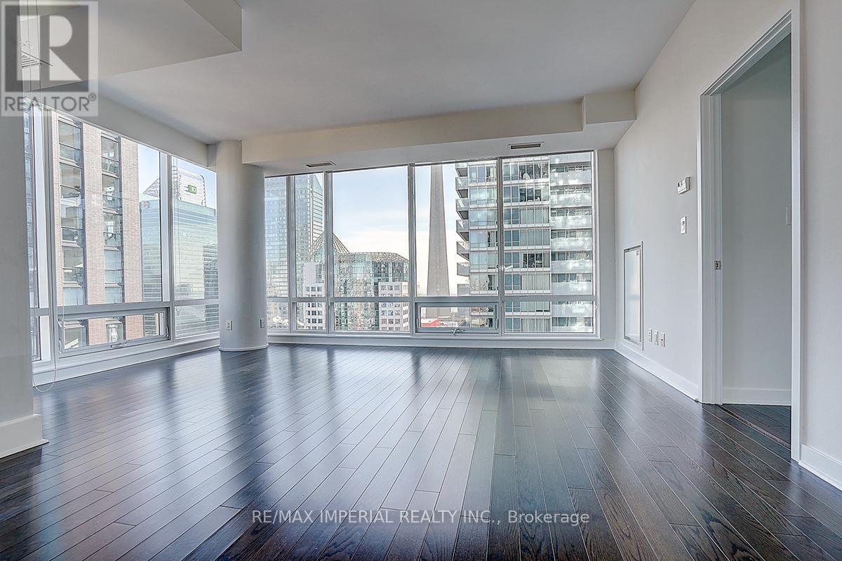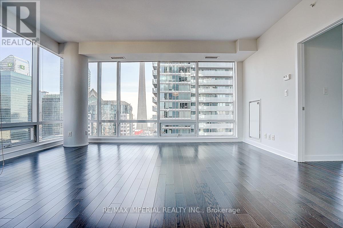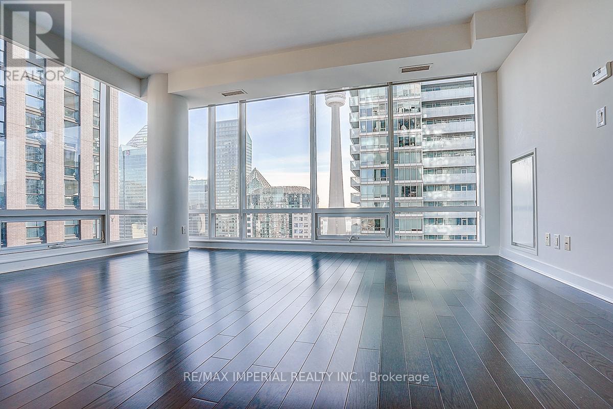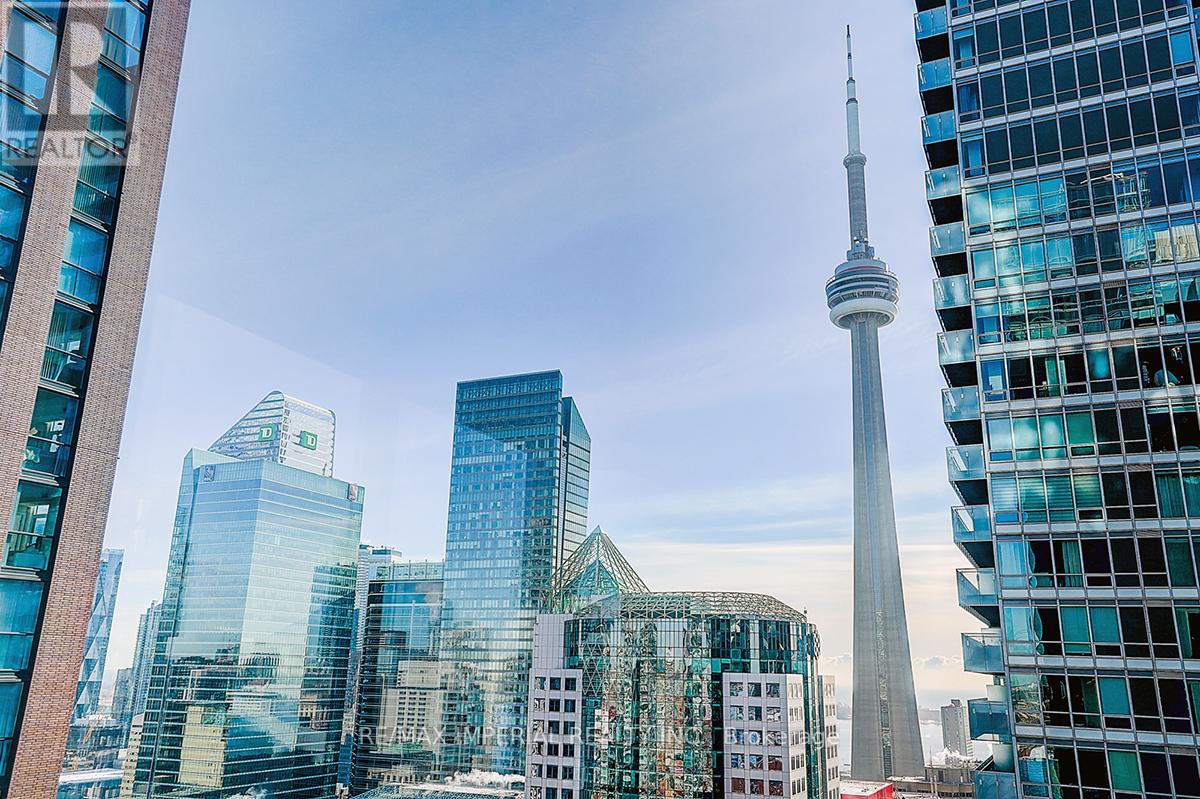 Newly painted with brand-new smooth ceilings, this bright south-east corner 2-bedroom is wrapped in floor-to-ceiling windows, filling the open-concept layout with natural light throughout the day. Enjoy unobstructed CN Tower views, panoramic city vistas, and partial Lake Ontario views from the main living areas. Fresh, clean, and move-in ready, the suite features a functional split-bedroom design and a spacious living/dining area ideal for everyday comfort. Located in the heart of downtown, steps to transit, dining, entertainment, and the Financial District. A beautifully updated corner suite in a prime urban location. Amenities include: 24/7 Concierge, Gym, Yoga room, Meeting Room, Theater Room, Pool, Party room, Sauna and more. (id:60063)