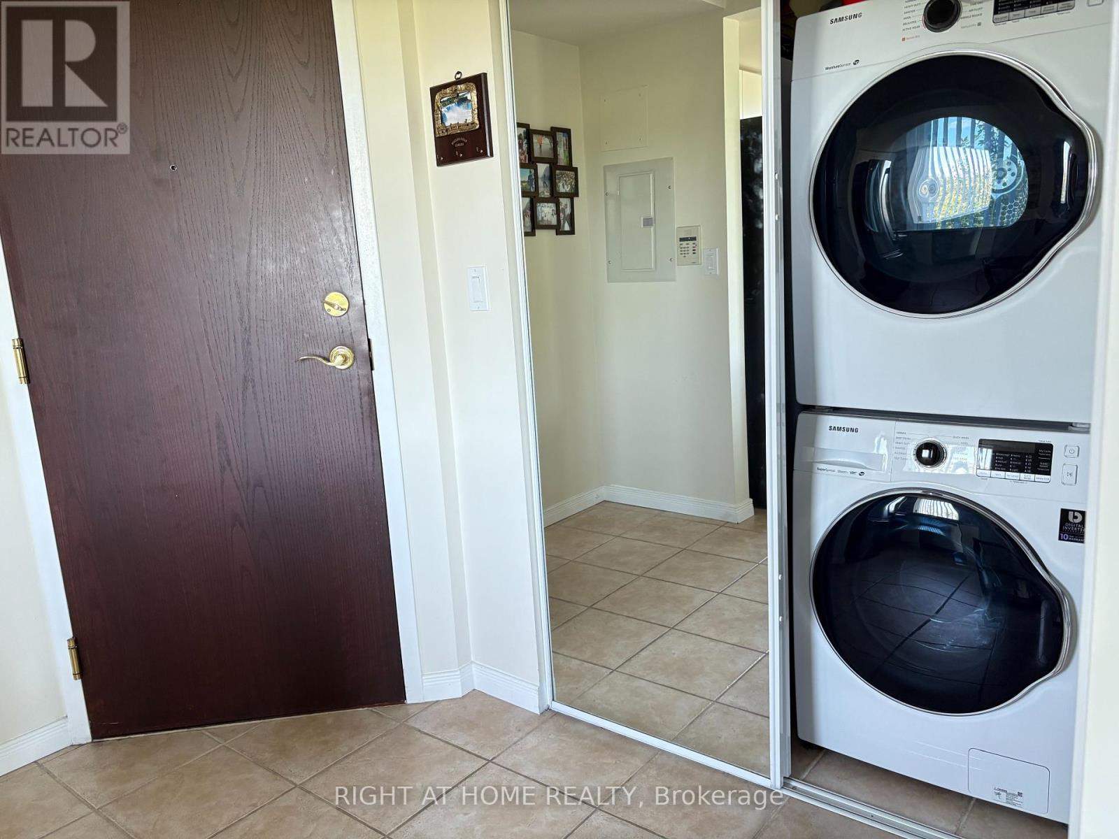 $529.26 MonthlyBeautiful Corner Unit Overlooking Trees! Laminate Flooring, Smooth Ceilings, Paint, Samsung Frontload Washer/Dryer & B/I Micro. Bright Kitchen W/Travertine Backsplash, Center Movable Island & 4 S/S Appl's! Electric Fireplace! Balcony Overlooks Lush Woods! Bright Unit With Wrap Around Windows! Hydro & Heat & Water, CAC, 1 Prkg 1 Locker Included In Low Maint Fees! 24 Hr Concierge. Amenities are located on second floor: Party rm, 2 Exercise rm, Pool, Jacuzzi, Tennis Court. Building is surrounded by park W/Walking paths, Lush Greenery, Charming Gazebo, and Kids Playground, Lots of Visitor Parking. Good Schools, Walk to Transit, Hospital, Mall. Easy Highway access. (id:60063)