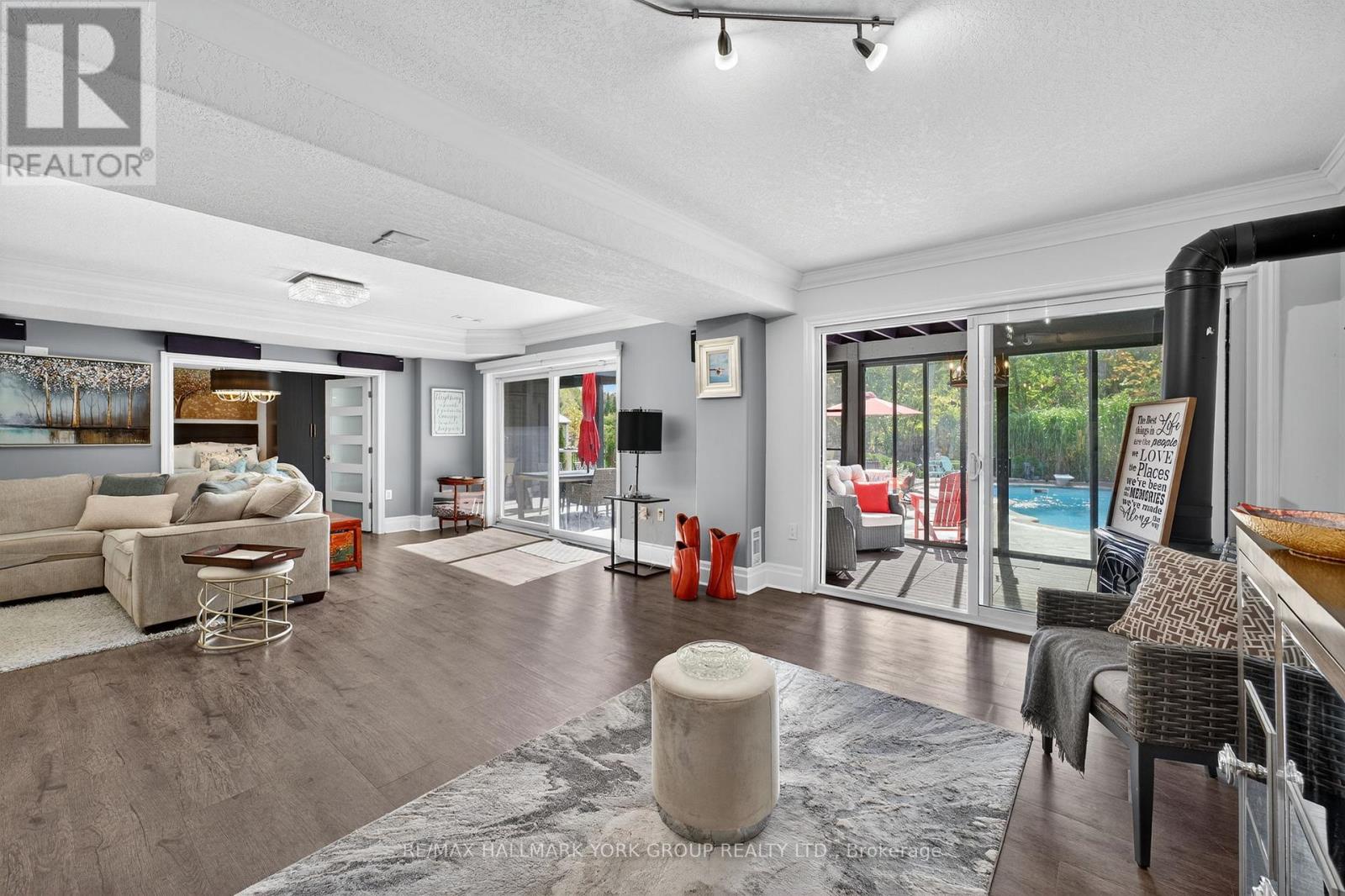 A True Masterpiece with Your Own Private Oasis Backing Onto Ravine! Entertainers dream home tucked away in the highly sought-after Painswick South community. One of a kind property combines exceptional luxury, unmatched privacy, and a lifestyle designed for both relaxation and celebration. Step outside and discover a backyard retreat that feels like your own resort fully fenced, landscaped to perfection, and backing directly onto EP land for incredible views and tranquility. Enjoy summers by the in-ground saltwater pool, host family BBQs on the expansive glass-railed deck with gas hook-up, or simply unwind in complete privacy surrounded by lush greenery and mature trees. Open-concept design is nothing short of spectacular. Sun-filled rooms with oversized windows, multiple walkouts, heated floors, and stunning designer lighting create an inviting atmosphere throughout. The chefs kitchen is the heart of the home, featuring high-end stainless steel built-ins, quality cabinetry, and a large island with seating the perfect space for entertaining and everyday living. The main-level primary suite is a true retreat, complete with a private walkout to the deck, a spa-inspired ensuite with Bluetooth-enabled rainfall shower & body jets, floating vanities, and a make-up station all connected to a massive custom walk-in closet. Upstairs, an upgraded loft offers additional living or work space with open views below. The walkout basement continues to impress, boasting a bright living area with a gas fireplace, full bar (wine fridges, beverage fridge, martini freezer, ice maker!), and direct access to a sunroom and the pool. A second luxurious primary suite features a freestanding tub and another lavish Bluetooth shower, while a third bedroom, wine room, and full laundry space complete the lower level. This home is more than just a place to live its a lifestyle. Immaculately designed, expertly appointed, and perfectly located minutes from schools, parks, shopping, and amenities (id:60063)